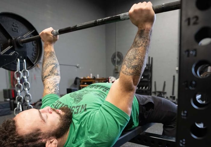 The use of chains is commonplace in Conjugate-based training plans. Chains are one of our options for introducing accommodating resistance into training and are useful during both maximal and dynamic effort training days. Chains offer the ability to accommodate resistance without an overspeed eccentric effect, while also placing a stability demand on the athlete.